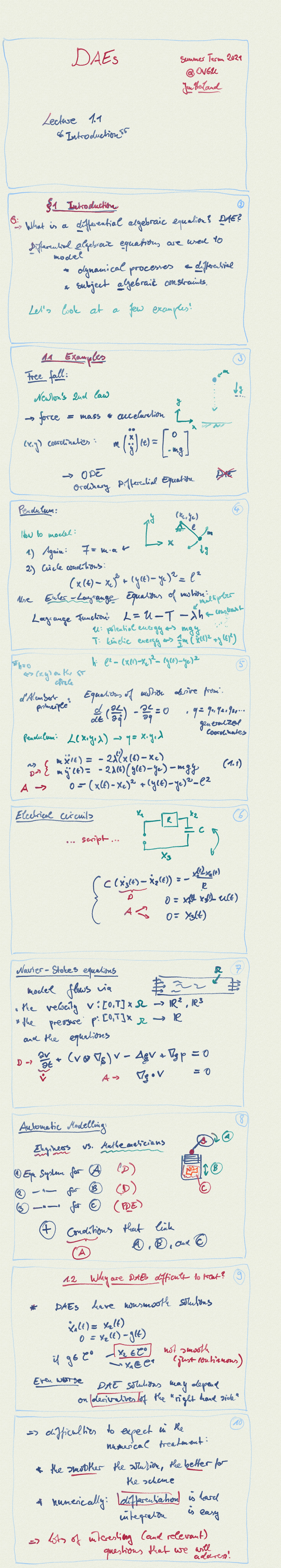 1 Introduction Introductory considerations DAEs in mathematical modelling Applications areas and examples Challenges in the numerical and analytical treatment of DAEs Lecture 1.1 Chapter 1 in the script The whiteboard notes Next 2 Basic Definitions and Notions