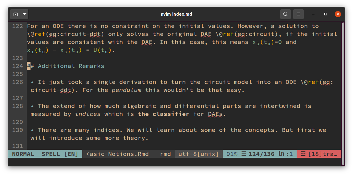 The sources are conveniently edited in my favorite editor. With syntax highlighting and code concealing, the basic parts of the markup is partially hidden and already preinterpreted.