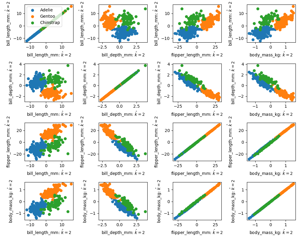 Pinguin Datenset – rekonstruiert von \(\hat k =2\) Hauptachsenkoordinaten